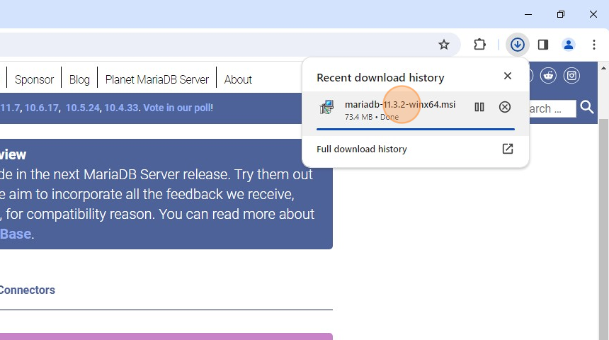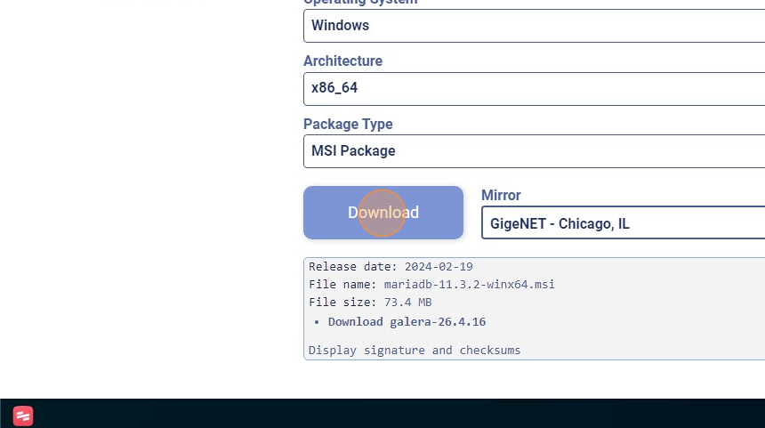 1. Find and open the Download MariaDB Server website (https://mariadb.org/download/)