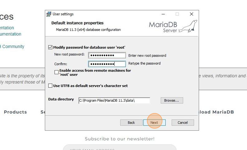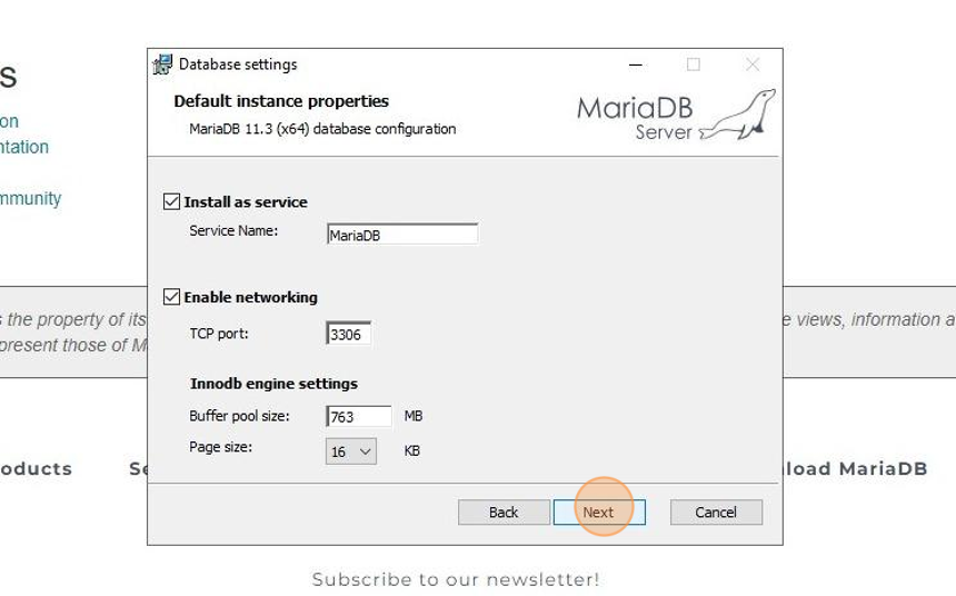 - "Install as service" means MariaDB will start automatically when the computer is booted.