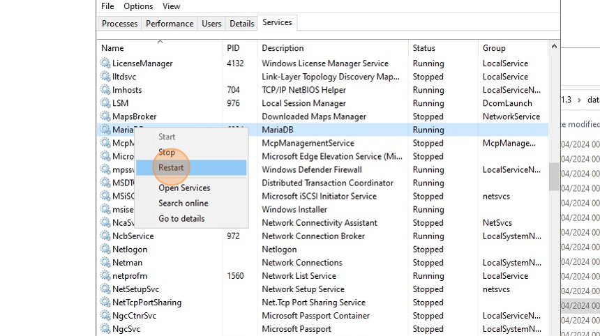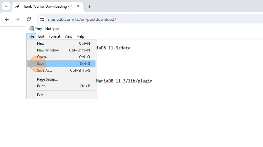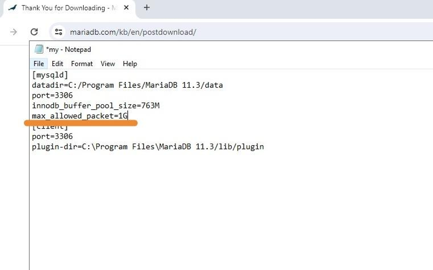 11. Now we're going to add a new setting to MariaDB, which allows us to upload large SQL files.